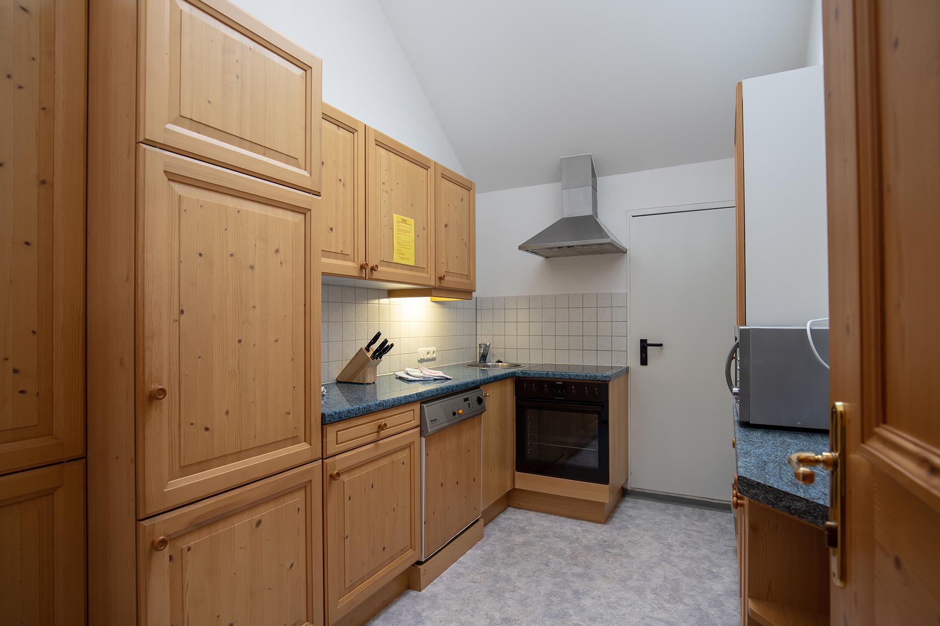 Ausstattung: Geschirrspülmaschine, Kühlschrank, Elektroherd , Mikrowelle mit Grillfunktion , Kaffeemaschine, Wasserkocher, Geschirr, Besteck, Geschirrtücher, Toaster, Hand-und Badetücher, Saunatücher, Bettwäsche und Bademantel